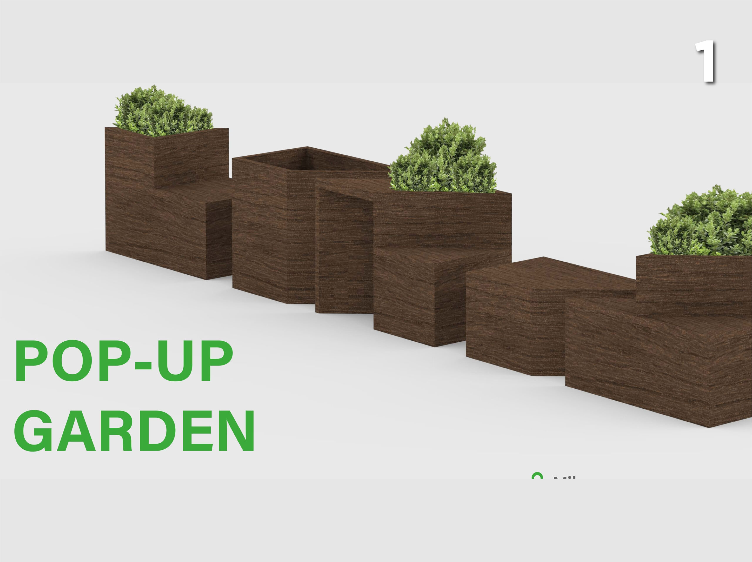 Pop Up Garden is a project that aims to symbolise the need to care for and protect nature by creating green areas in Milan. To this end, trapezoid-shaped modules have been designed which, thanks to their combinations, allow human beings to connect with nature, benefiting citizens as well as animals and plants. In addition to the dual functionality of these modules, thanks to a donation system in collaboration with the SUGI group, the connection and user experience will be more direct and collaborative.