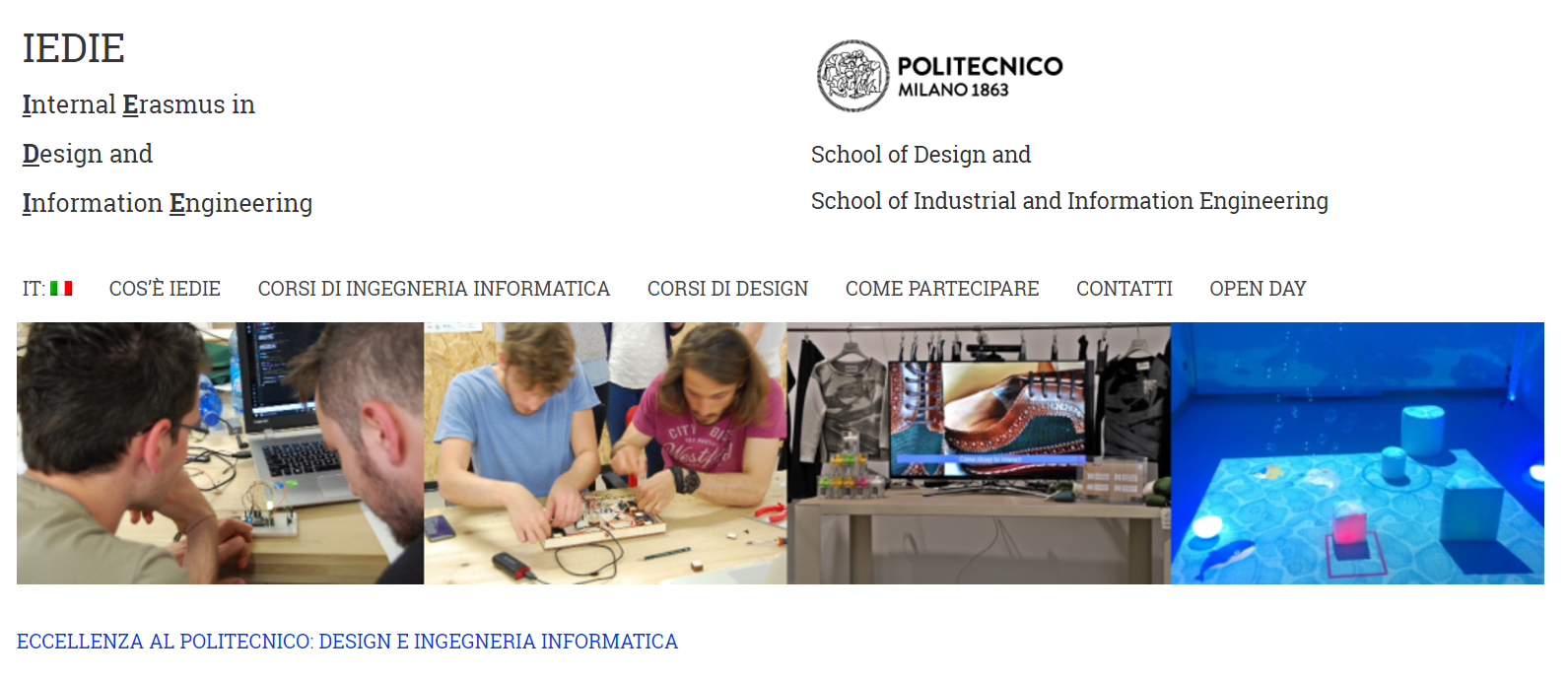 Il 6 Settembre è avvenuta la presentazione del progetto IEDIE – Il progetto di Erusmus Interno al Politecnico di Milano tra Design e Ingegneria Informatica, con inizio nell’a.a. 2016-17. IEDIE offre agli studenti di Laurea Magistrale in Design (della Comunicazione e del Prodotto per L’Innovazione) e Ingegneria Informatica la possibilita’di svolgere esperienze formative e progettuali presso entrambe le Scuole, per ampiare le proprie competenze, stimolare la propria creativita’ e capacita’ di innovazione, e prepararsi in modo piu’ completo ad affrontare le sfide del mondo moderno.